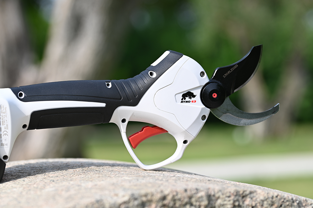 RYNO 45 est un sécateur électrique semi-professionnel avec une batterie au lithium, idéal pour des coupes rapides.